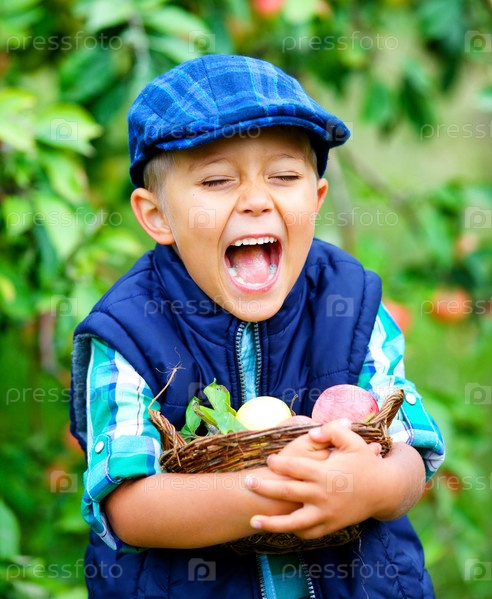 Милый мальчик в яблоневом саду