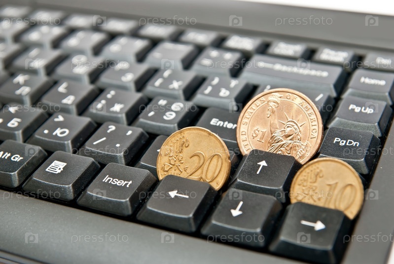 Три монеты на компьютерной клавиатуре