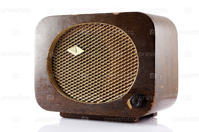 Старый радиоприемник на белом фоне