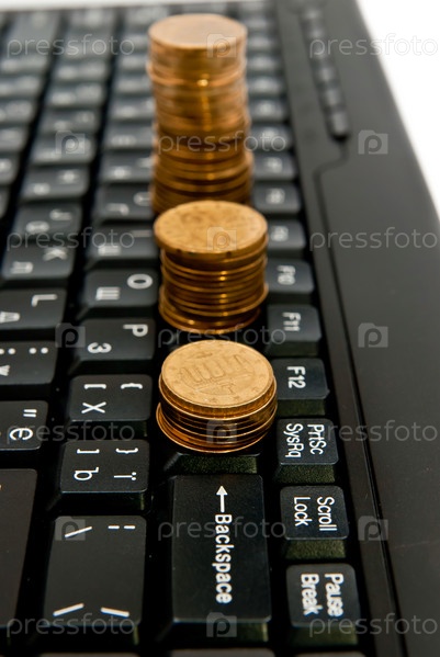Ряд из монет на компьютерной клавиатуре