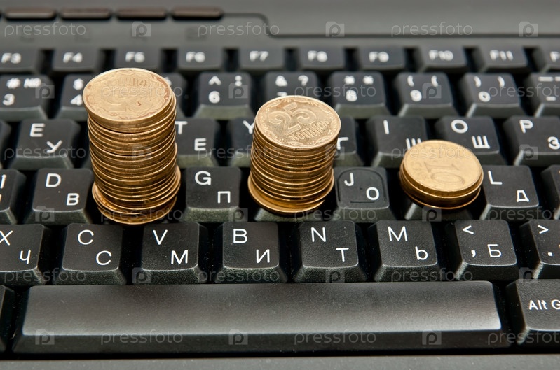 Ряд из монет на компьютерной клавиатуре