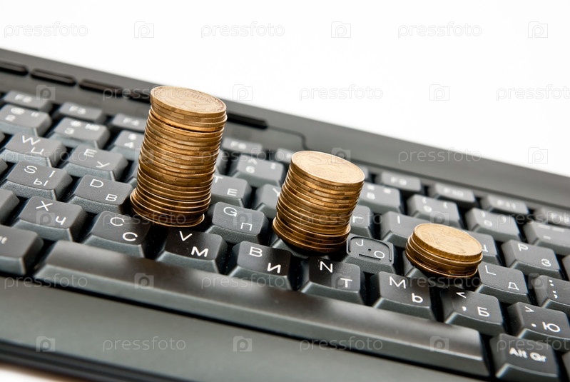 Ряд из монет на компьютерной клавиатуре