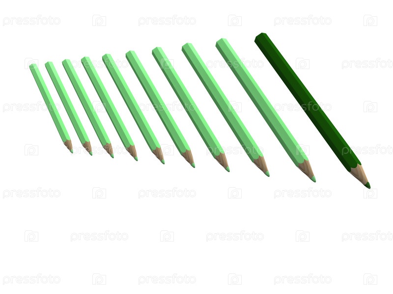 Зеленые карандаши на белом фоне