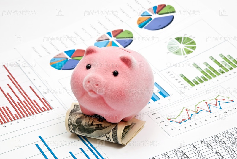 Копилка с американскими долларами и диаграммой крупным планом