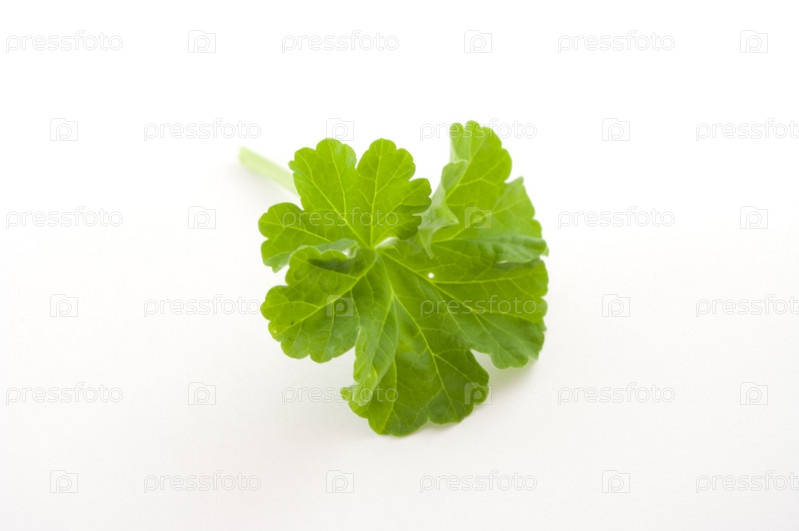 Зеленый листок на белом фоне крупным планом
