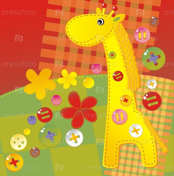 Детский жираф с пуговицами на разноцветном фоне