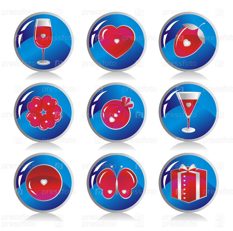 Синие иконки с красными рисунками на белом фоне