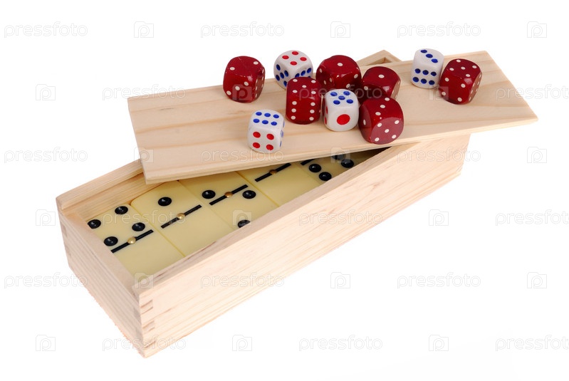 Кости домино и игральные кубики на белом фоне