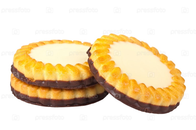 Печенье с джемом и шоколадом на белом фоне