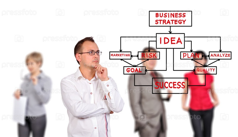 Человек смотрит на схему бизнес-стратегии