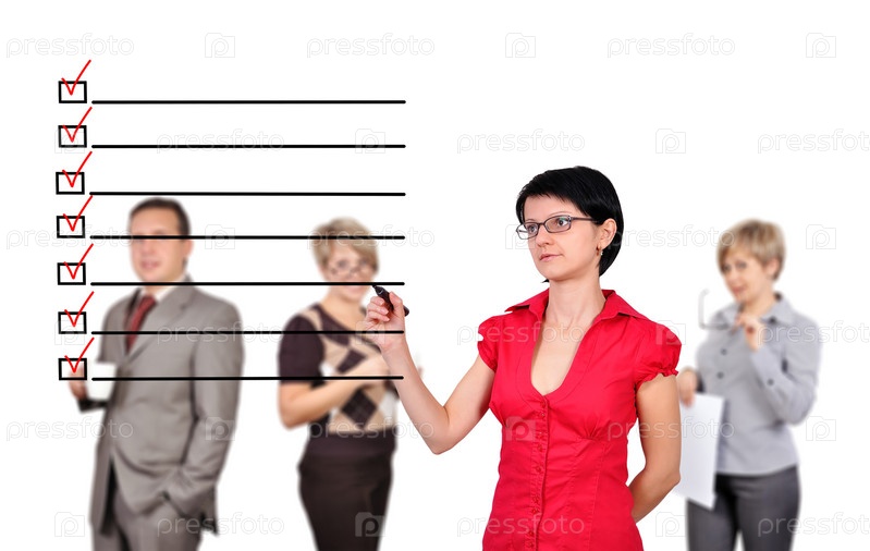 Женщина рисует галочку