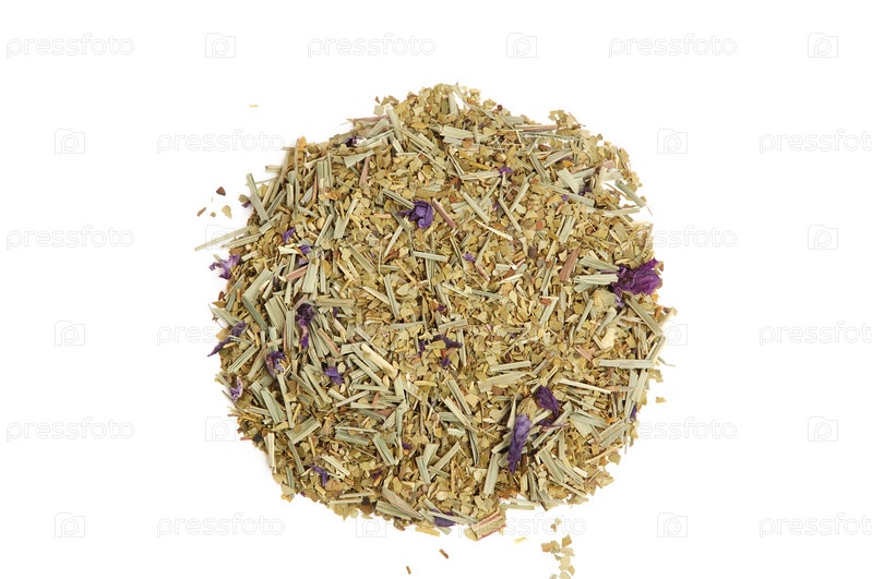 Сухие листья ерба-мате на белом фоне, традиционный напиток Аргентины
