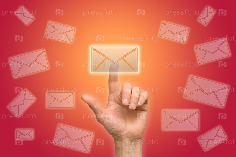 Рука нажимает на кнопку. Электронная почта