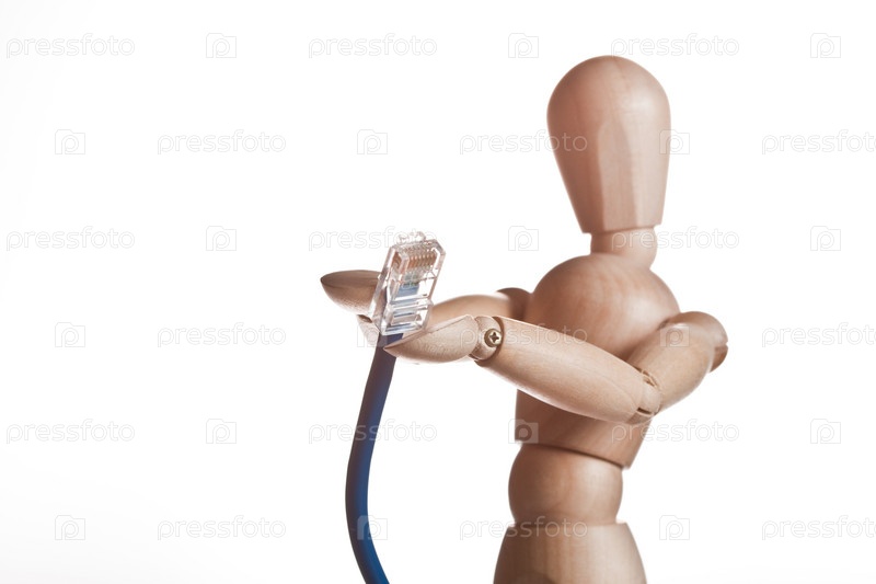 Деревянный человечек подает провод