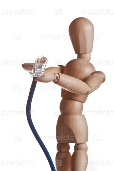 Деревянный человечек подает провод