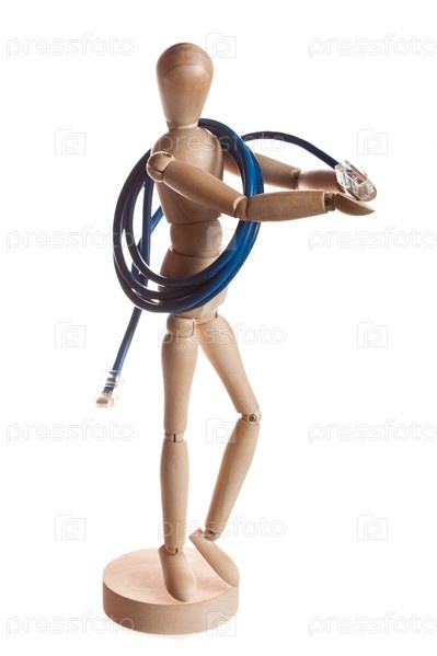 Деревянный человечек подает провод