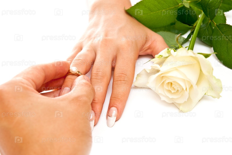 Мужчина одевает женщине обручальное кольцо