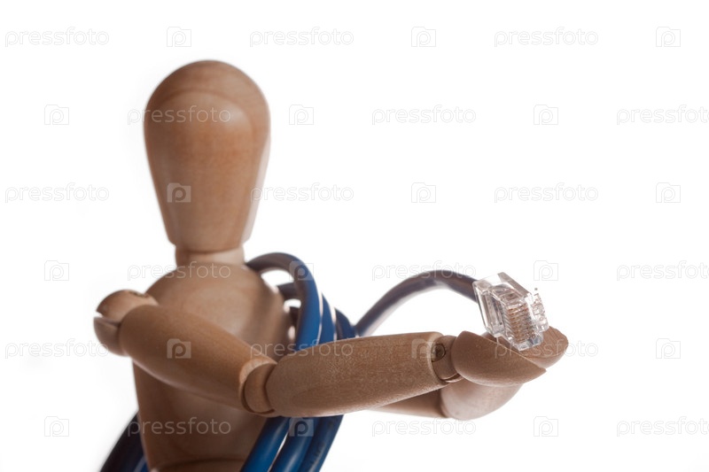 Деревянный человечек подает провод