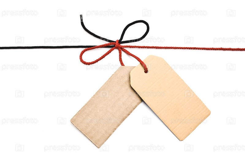 Картонные ярлычки на веревке на белом фоне