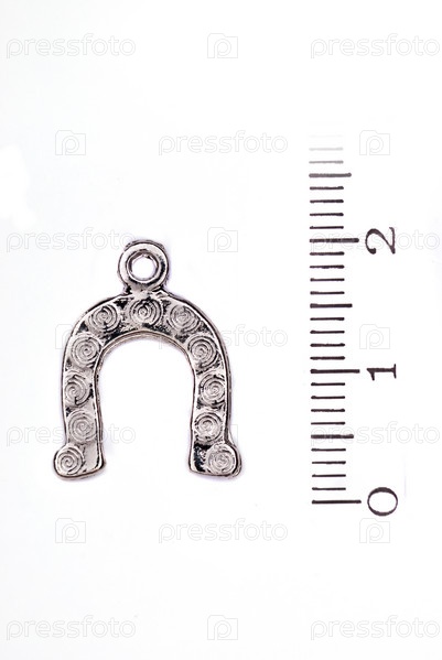 Металлическая подкова со стразами на белом фоне