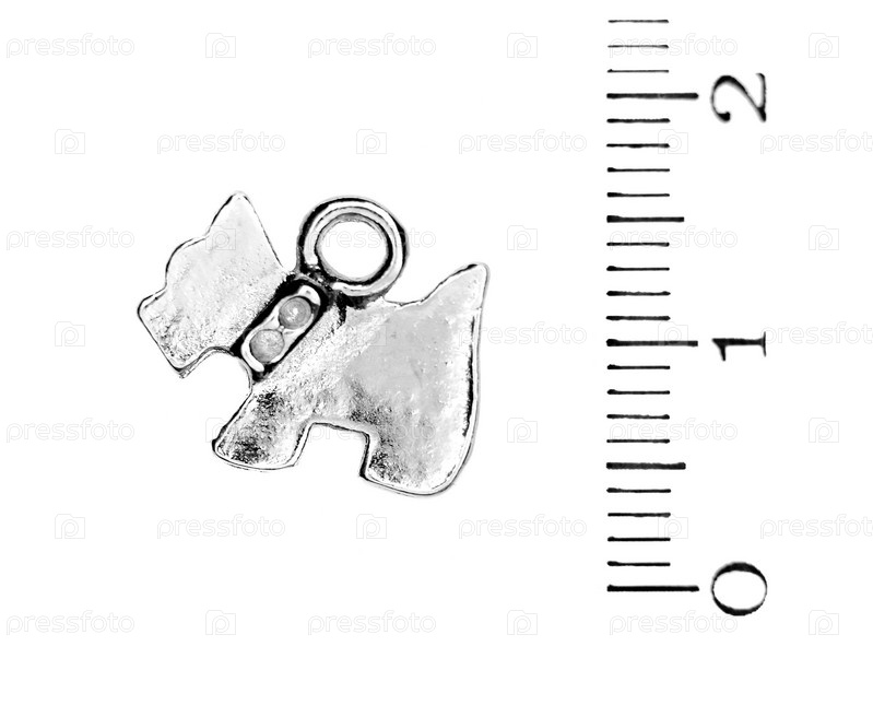 Бижутерия из металла в виде собачки на белом фоне
