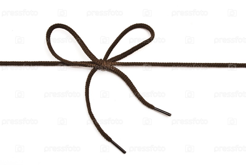 Коричневый шнурок, завязанный в бантик, на белом фоне