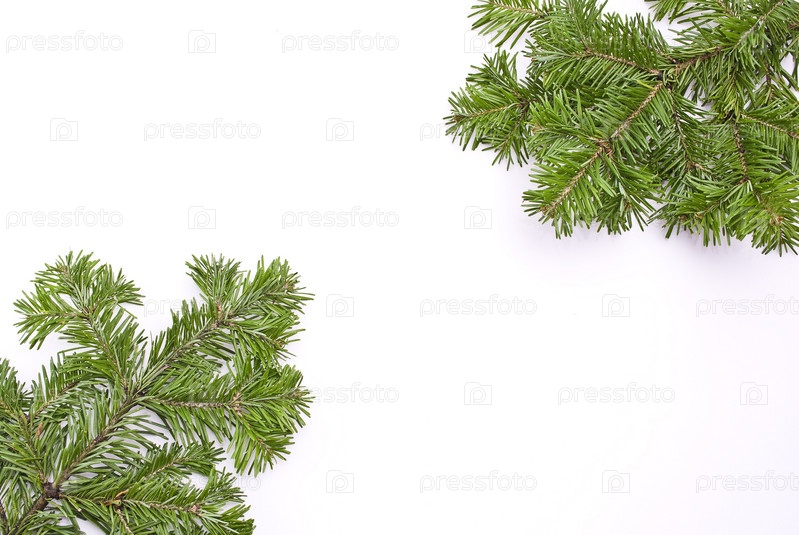 Еловые ветки на белом фоне