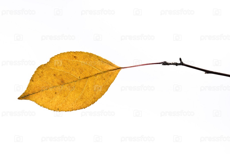 Желтый осенний лист на белом фоне
