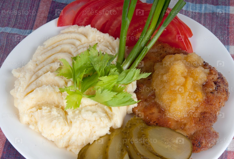 Картофельное пюре со стейком из свинины