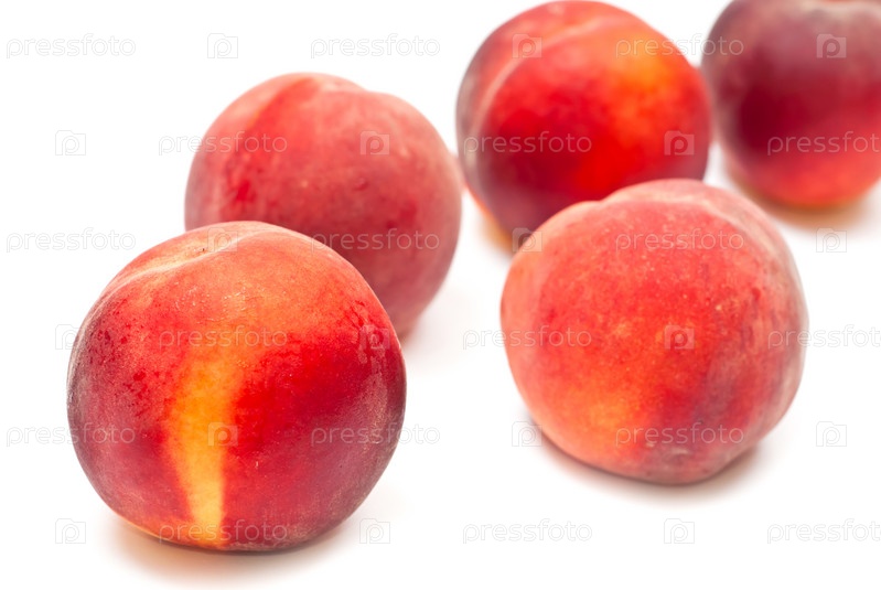 Свежие красные персики на белом фоне