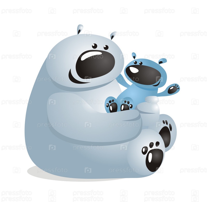 Нарисованный белый медведь с медвежонком