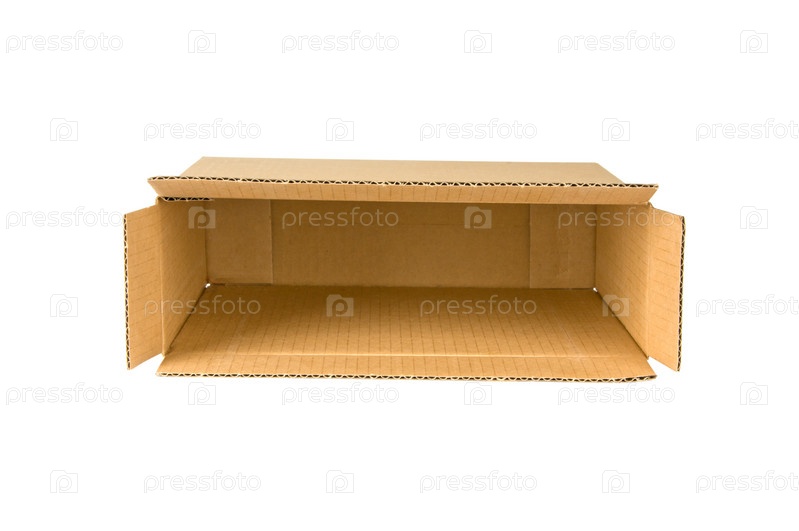 Открытая картонная коробка, изолированная