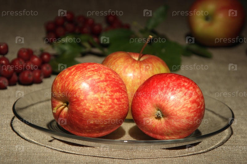Спелые яблоки на стеклянной тарелке