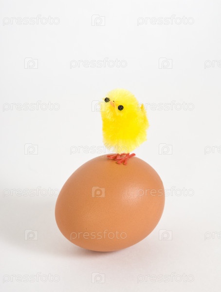 Игрушечный цыпленок на яйце