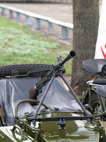 Ручной пулемет Дегтярева на мотоцикле