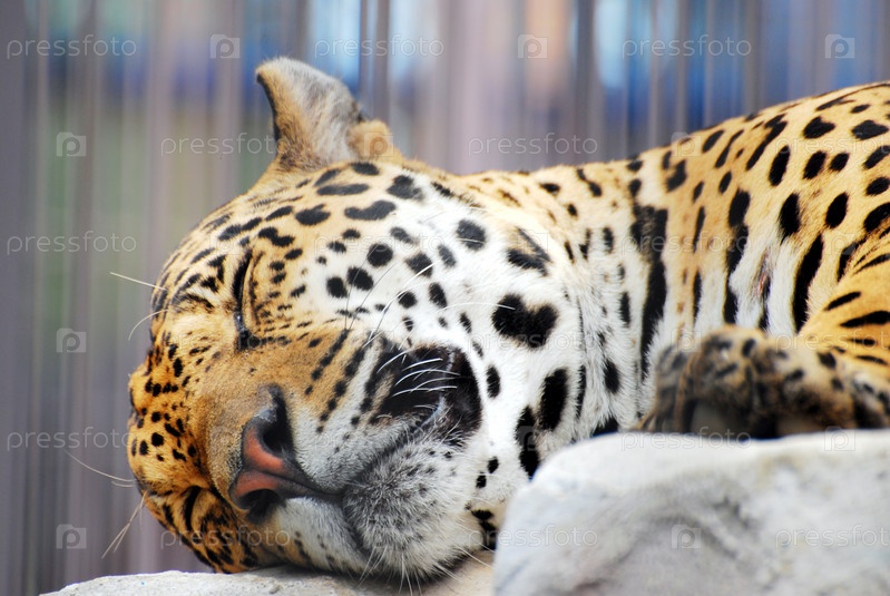 Спящий ягуар в зоопарке