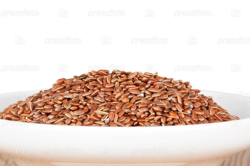 Красный рис в миске на столе