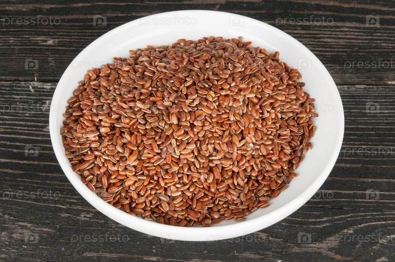 Красный рис в тарелке на столе