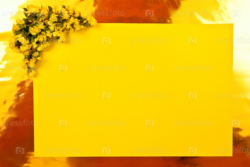Пустая желтая поздравительная открытка с цветами