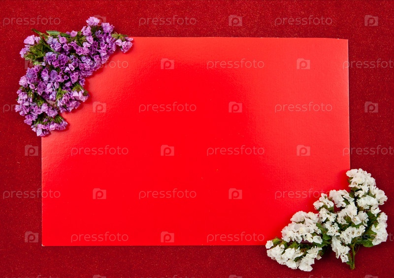 Красный бумажный лист с цветами на бордовом фоне