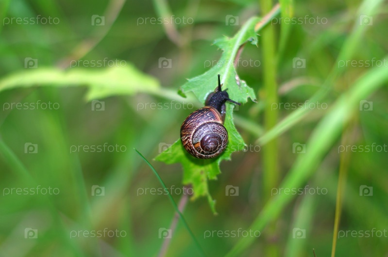 Улитка на зеленом стебле