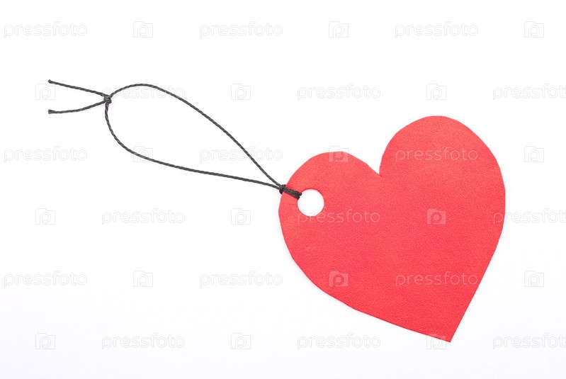 Красное сердце на веревочке на белом фоне