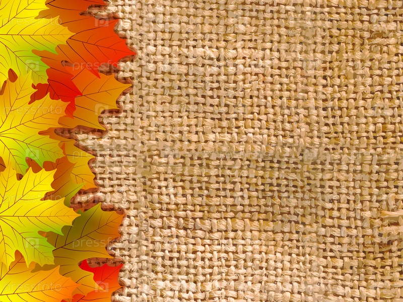 Фон из мешковины и осенних листьев