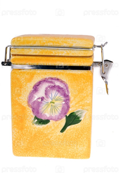 Емкость для хранения крупы и сахара на белом фоне