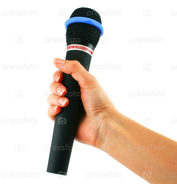 Беспроводной микрофон в руке, изолированный на белом фоне