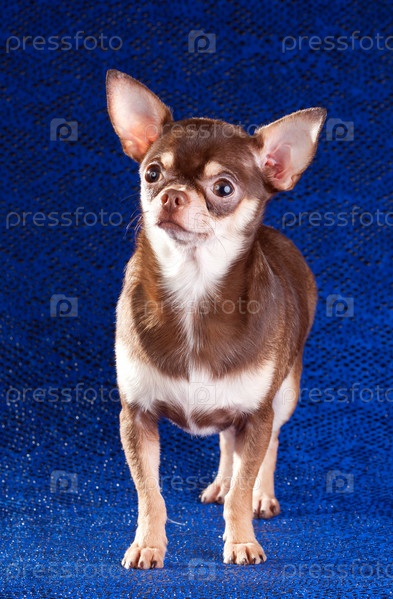 Собака породы чихуахуа на синем фоне