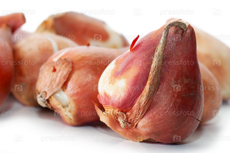 Луковицы тюльпанов на белом фоне
