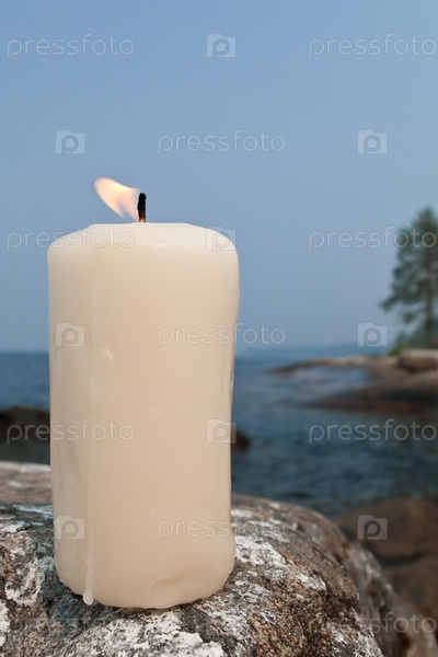 Свеча горит на фоне северного пейзажа