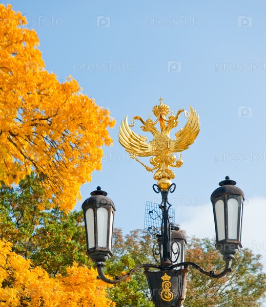 Красивый уличный фонарь с гербом России
