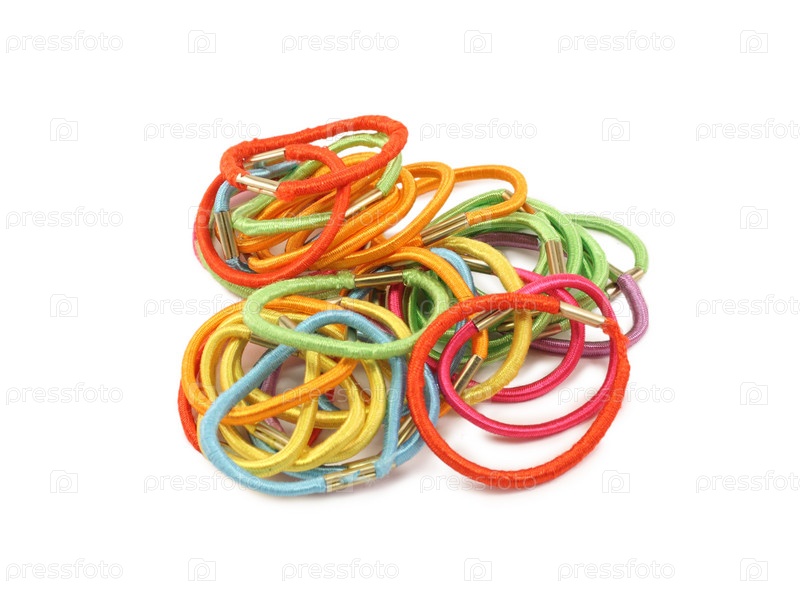 Женские многоцветные резиновые ленты для волос на белом фоне